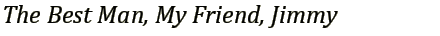 |  | Jimmy has been my partner in crime since 1998. We have definitely been through a lot over the years but I wouldn't trade it for the world. Thanks man for being such a good friend. Now it is MY turn to get married and you will be right there beside me, the Best Man! |