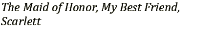 |  | Scarlett will be my Maid of Honor and I couldn't have asked for a better friend to be with me on my special day. We have known each other since we were little girls in elementary school. I love you and I am so happy you'll be there in Maui when I finally get to say "I Do"! |